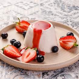 Frișcă,gelatină,zahăr,căpșuni,afine,sos de zmeură și coacăză270 gr! Conține alergeni - lapte