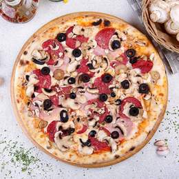 Sos Pomodori pelati, mozzarella, şuncă, salam, ciuperci, măsline. 590 g*Acest produs conține alergeni 1,7*Gramajul este indicat pentru forma crudă a produsului.