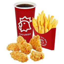 Meniu Rigo Wrap cu Crispy de pui proaspăt prăjit, învelit în tortilla cu roșii, castraveți proaspeți, salată Iceberg și sos burger, o portie de cartofi pai si o bautura la alegere