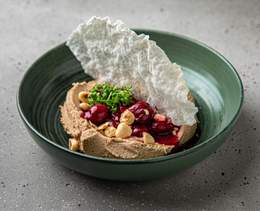 Aperitiv mediteranean din icre de cod, brânză cremoasă și suc de lămâie, servit cu calmar uscat - 120/20gr