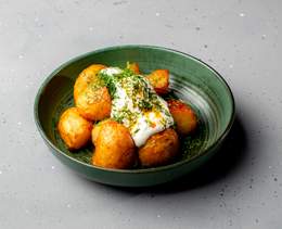 Cartofi prăjiți, serviți cu smântână și mărar - 270 gr