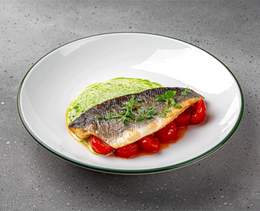 File de biban de mare cu roșii cherry uscate și sos de cocos - 90/130 gr