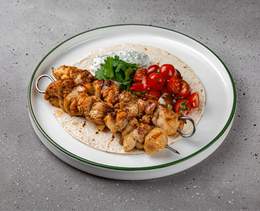 Frigărui din pulpă de pui servit cu sos Tzatziki și salată pe lavaș - 150/140/40