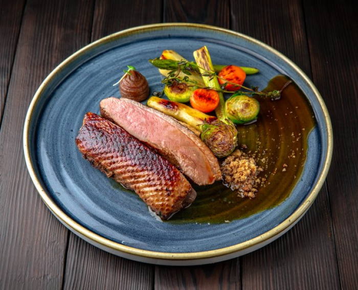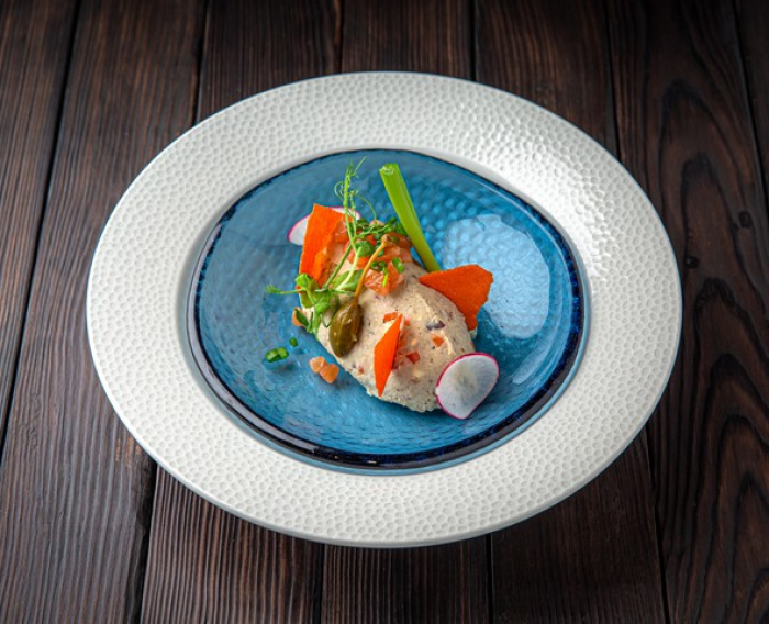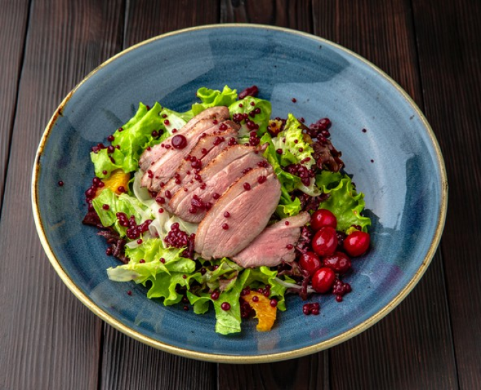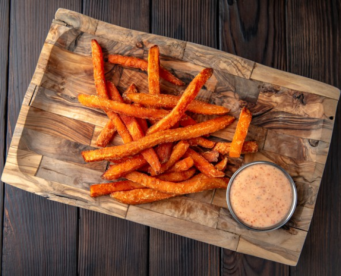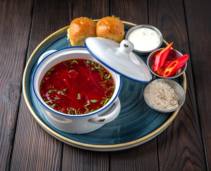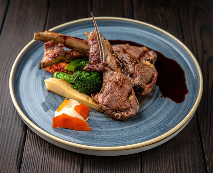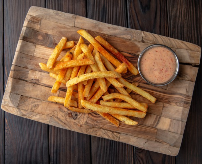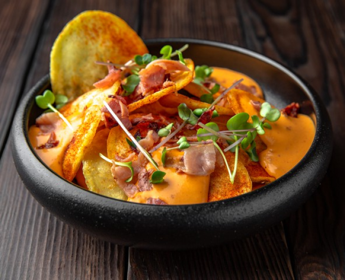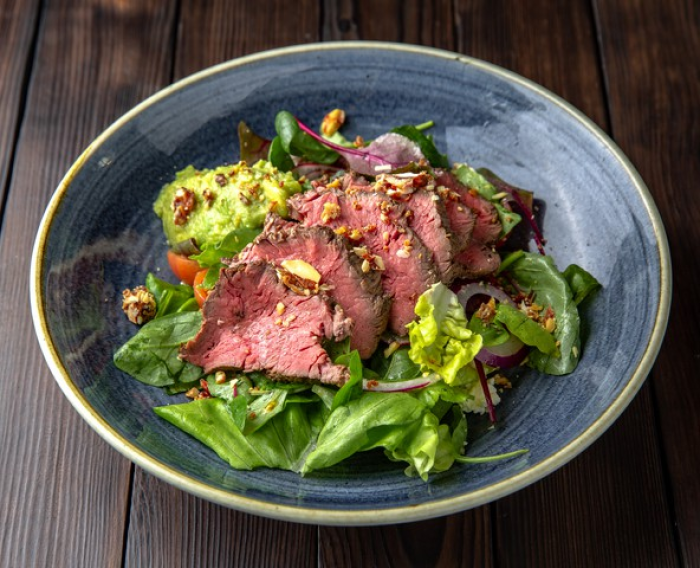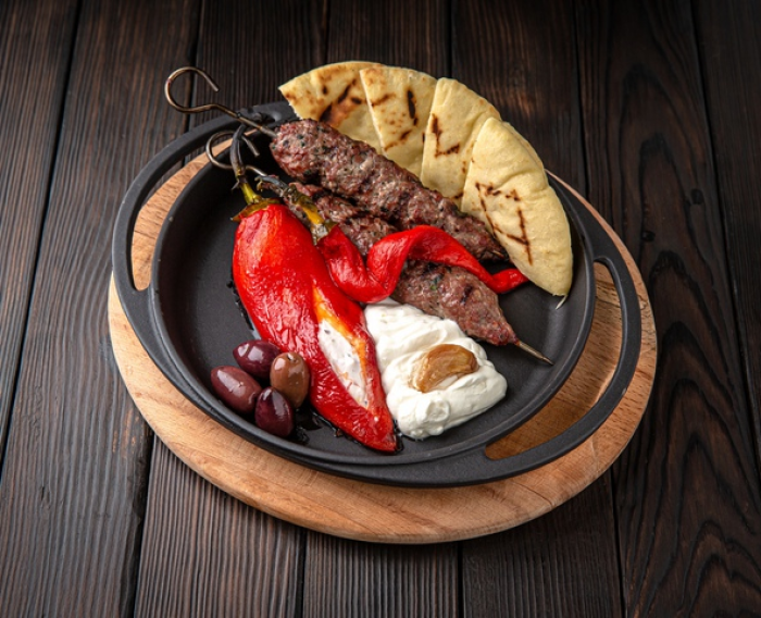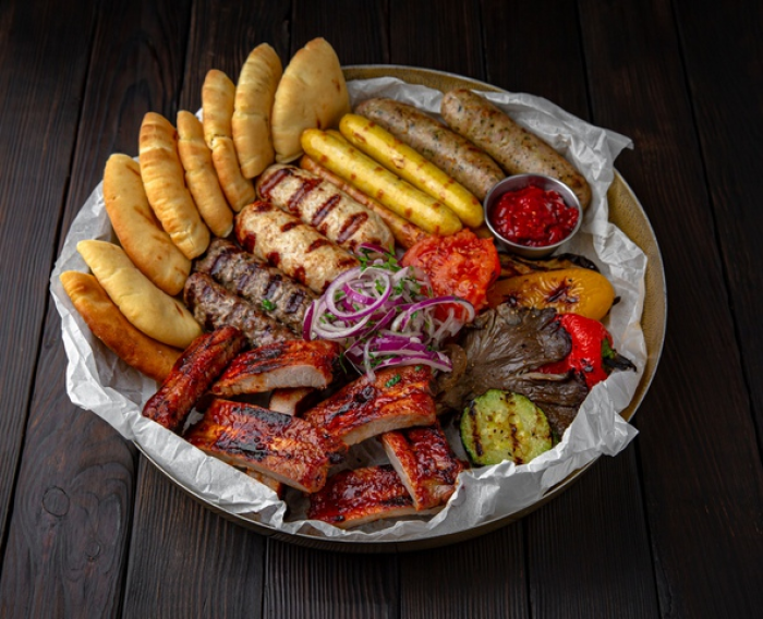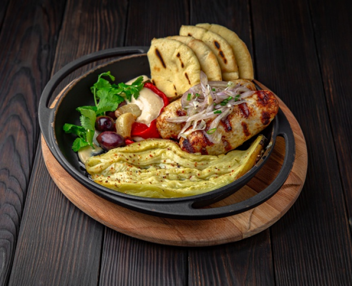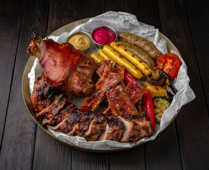 Pârjoală de vită, chiflă moale, sos burger (sos chili, sos de soia, maioneză de casă pe bază de muștar, suc de lămâie, oțet, unt și ou), sos Chili-Cheddar (cașcaval Cheddar, smântână de gătit, cremă de brânză, adjikă, unt, paprika), roșii, salată verde,