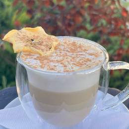 Baileys, яблочное пюре, соус карамельный, сливки, корица