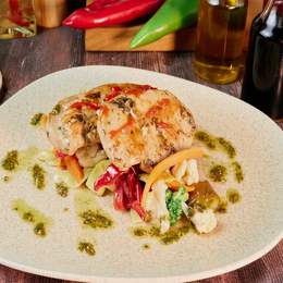 Chicken white meat, grilled seasonal vegetables with pesto sauce 380gr