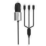 Auto punjač Denmen DZ11E (3 u 1 kabal, 2.4A 12W) - crna
