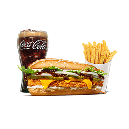 Neke stvari se nikada ne mijenjaju, na primjer: ukus Chicken Royale. Dugačka piletina u susamovom pecivu zajedno sa svježom zelenom salatom i majonezom pruža vam nezaboravan ukus.Uključeno piće srednje veličine i srednji pomfrit.