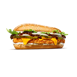 Duguljasto pecivo, 14 g majoneza, 14 g zelene salate, 16 g teriyaki sosa, 3 kolutića luka, 4 kolutića kiselih krastavaca, 2 kriške sira, 1 dugi pileći file, još 14 g majoneza i donje duguljasto pecivo.