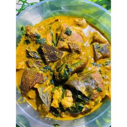 A serving of soup made from water leaf and bitter leaf vegetables. Please not that this soup does not come with meat or fish. Pease bear with us as things are super expensive. thank you for your understanding.