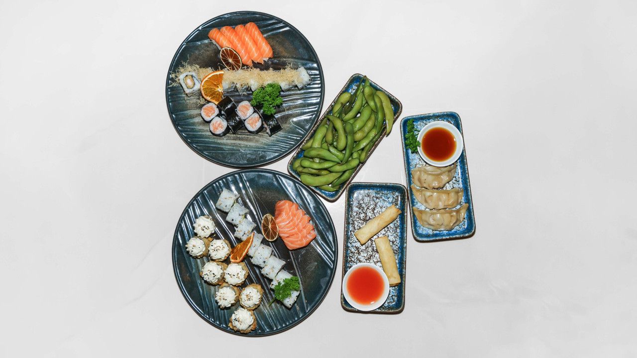 14 pz. -Nigiri sake (2 pz.) - 141 -Hosso sake (4 pz.) - 270 -Ura ebiten (4 pz.) - 308 -Ura sake (4 pz.) - 302