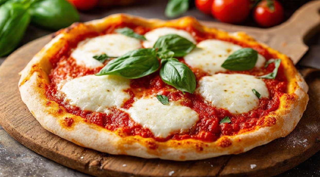 Molho de tomate, queijo, fiambre, bacon, azeitonas e cogumelos.