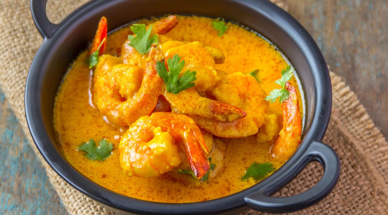 Prato traditional pouco temperado Soft prawns curry with gravy
