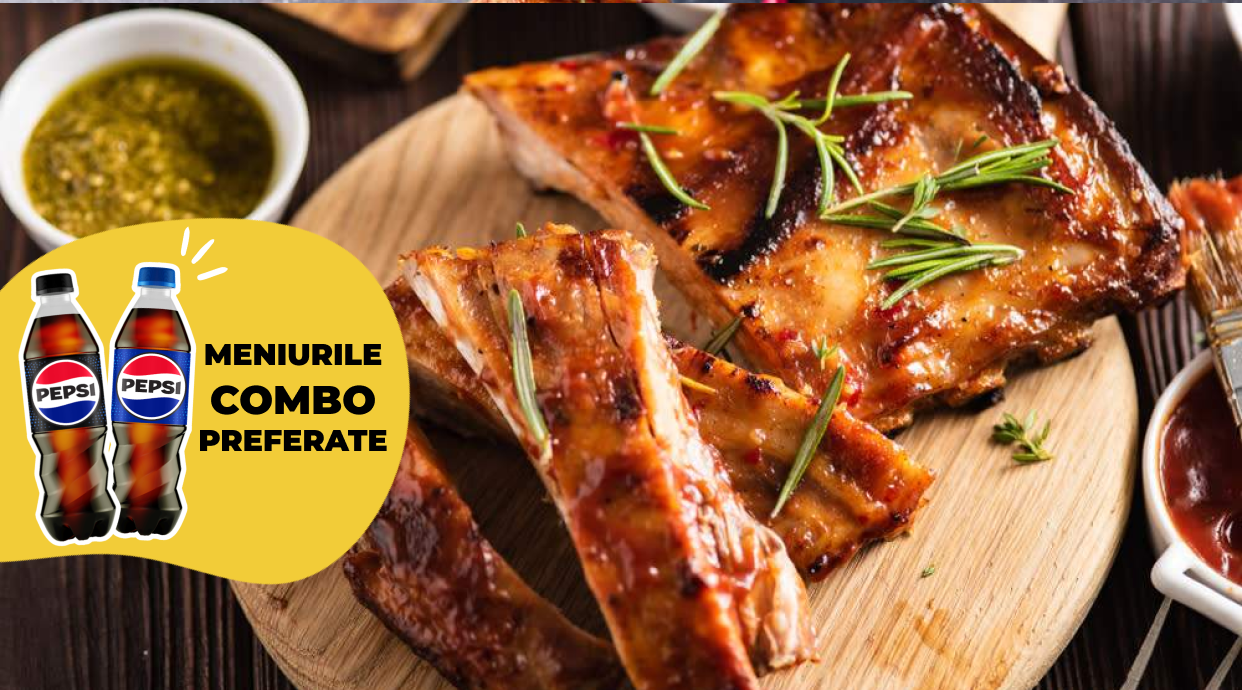 1 x Burger Palms, 1 x Cartofi Pai* cu sare, 1 x Sos O Mie De Insule, 1 x Doză de Pepsi (580g) + doza