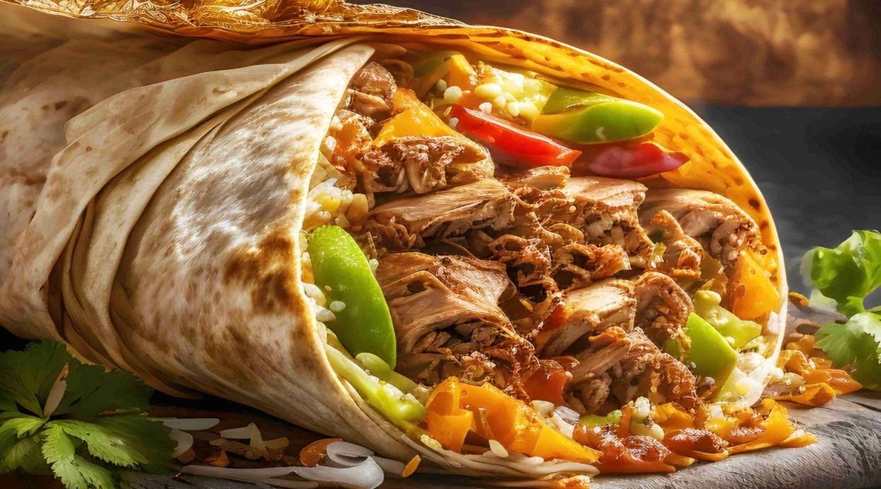 Лаваш , капуста , крем сир ,ананас , кукурузка ,куряче мʼясо , білий соус