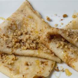 Palačinka sa medom, orasima, topingom od jagode i mlevena plazma