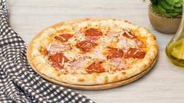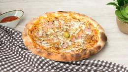 Capricossa 42cm Pelat, kačkavalj, šunka, šampinjoni, masline, origano + 2 palačinke