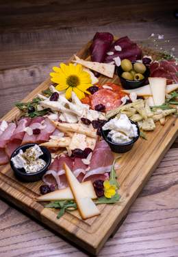Goveđa pršuta, njeguški pršut, suva svinjska pečenica, kulen, sir sa sremušem, dimljeni kačkavalj, sir sa maslinama, sir sa paprikom, beli sir, kozji sir, masline, gorgonzola, grana padano