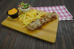 Svinjski file na raznjiću pomfrit + salata +sos