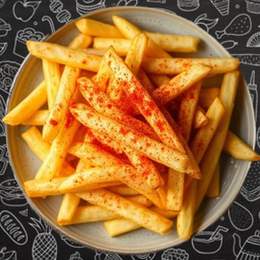 Uživajte u našem pikantnom pomfritu. Idealna grickalica pripremljena sa ljutim začinima.