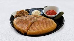Pelat, kulen, sriracha čili sos, kačkavalj, BBQ sos