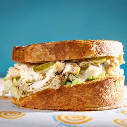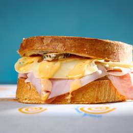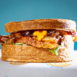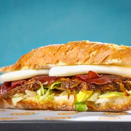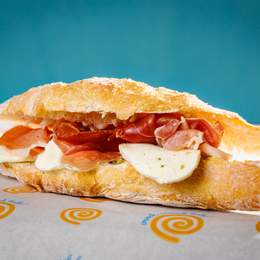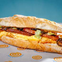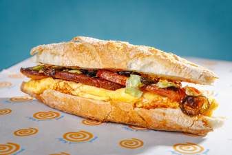 Baget sa paunflekom u bbq sosu, omlet, rukola, namaz od putera i pečenog belog luka, jalapeno džem