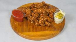 Rolovani punjeni ćevap 300g, pileća karađorđeva 300g, punjena vešalica 250g, batak 400g, kobasica 200g, hrskava piletina 400g, pomfrit 250g, ćevapi 200g, 2 ciganske lepinje, 2 obične lepinje, urnebes sos 50ml, tzatziki sos 50ml i dve palačinke