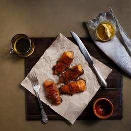 Pileći batak 200g, kačkavalj 40g, slanina 40g, skarma, lepinja i prilozi gratis
