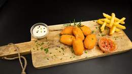 Krabe panirane 200g, pomfrit 100g, tatar sos, slatko-ljuti sos