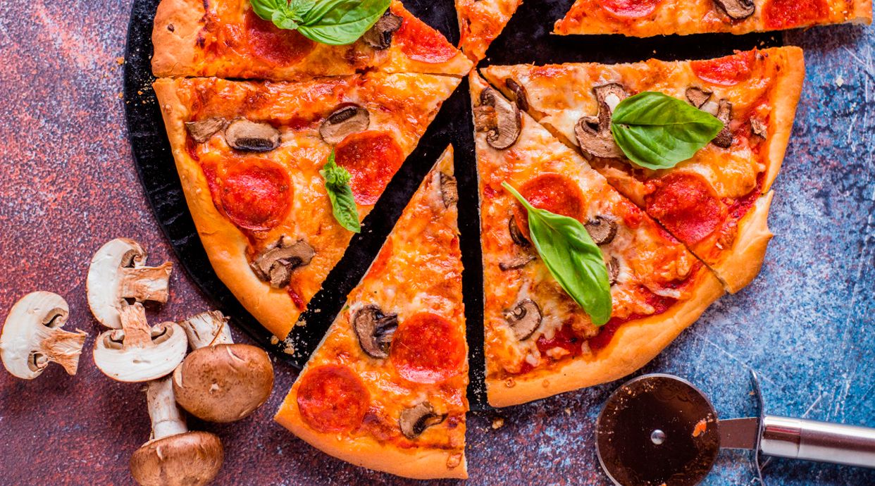 Molho tomate, fiambre, bacon, azeiotans e cougumelos
