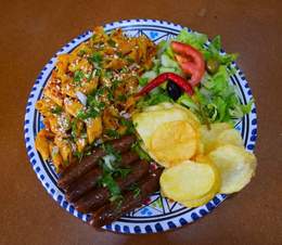 Merguez, salade, Frites, Tastira ou Pâtes,