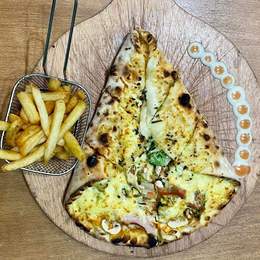 Avec mozzarella ; harissa; salade mechouia ; sauce algérienne; sauce pesto ; légum