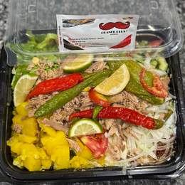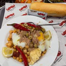 Œuf, thon, gruére, 2 fromage triangle, ail, salami saucisson, harissa, salade houria, salade mechouia