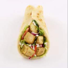 Un pain naan chaud et moelleux, garni d’une escalope de poulet panée croustillante, de légumes frais et d’une sauce onctueuse. Un mélange parfait de croquant et de fondant pour un repas savoureux.