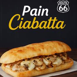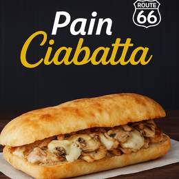 Pain ciabatta croustillant garni d’une escalope de poulet juteuse, accompagnée de légumes frais. Un sandwich savoureux et réconfortant.