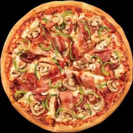 Base sauce tomate, mozzarella fondante, viande fumée savoureuse, olives et oignons. Une pizza généreuse au goût intense, parfaite pour les amateurs de viande.