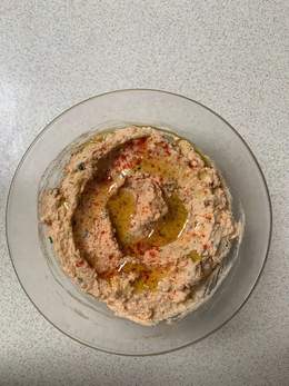 Purée de pois chiches, tahini, ail, citron, huile d'olive, cumin, paprika