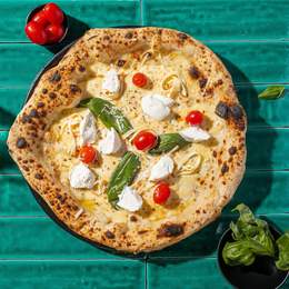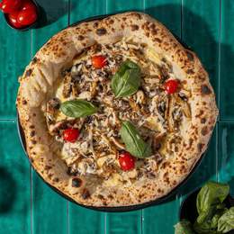 Sauce blanche ou sauce tomate, mozzarella covelli, grana padano, jambon fumé premium, champignons de paris, basilic frais, huile d'olive