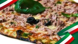 Sauce tomate, mozzarella fraîche, thon, olives, basilic frais, huile de peperoncino