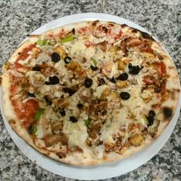 Sauce tomate, mozzarella, olives, escalope, chawarma , thon , jambon, champignons , légumes