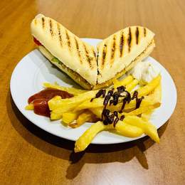 Harissa, mayonnaise, fromage, oignon, frites, tomate, laitue