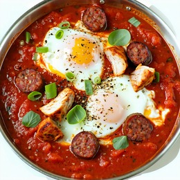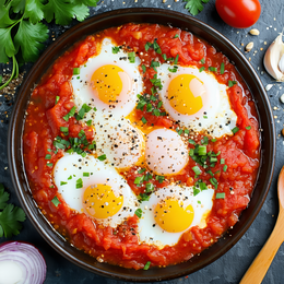 Sauce tomate, œufs, basilic