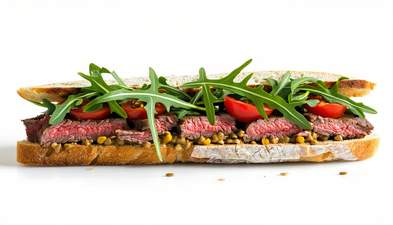 Sauces aux choix, garnitures aux choix, frites, poulet pesto, champignons