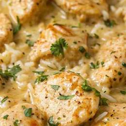 Riz poulet /escalope sauce blanche
