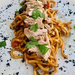 Sauces au choix, garnitures au choix, thon