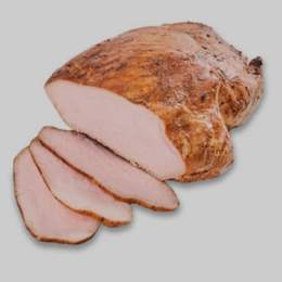 Sauce blanche, fromage, jambon de dinde, champignons.