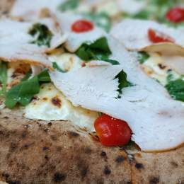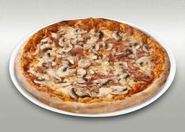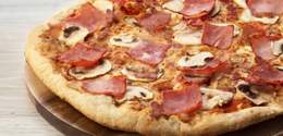 Sauce tomate ou sauce blanche, mozzarella, champignons, jambon de dinde