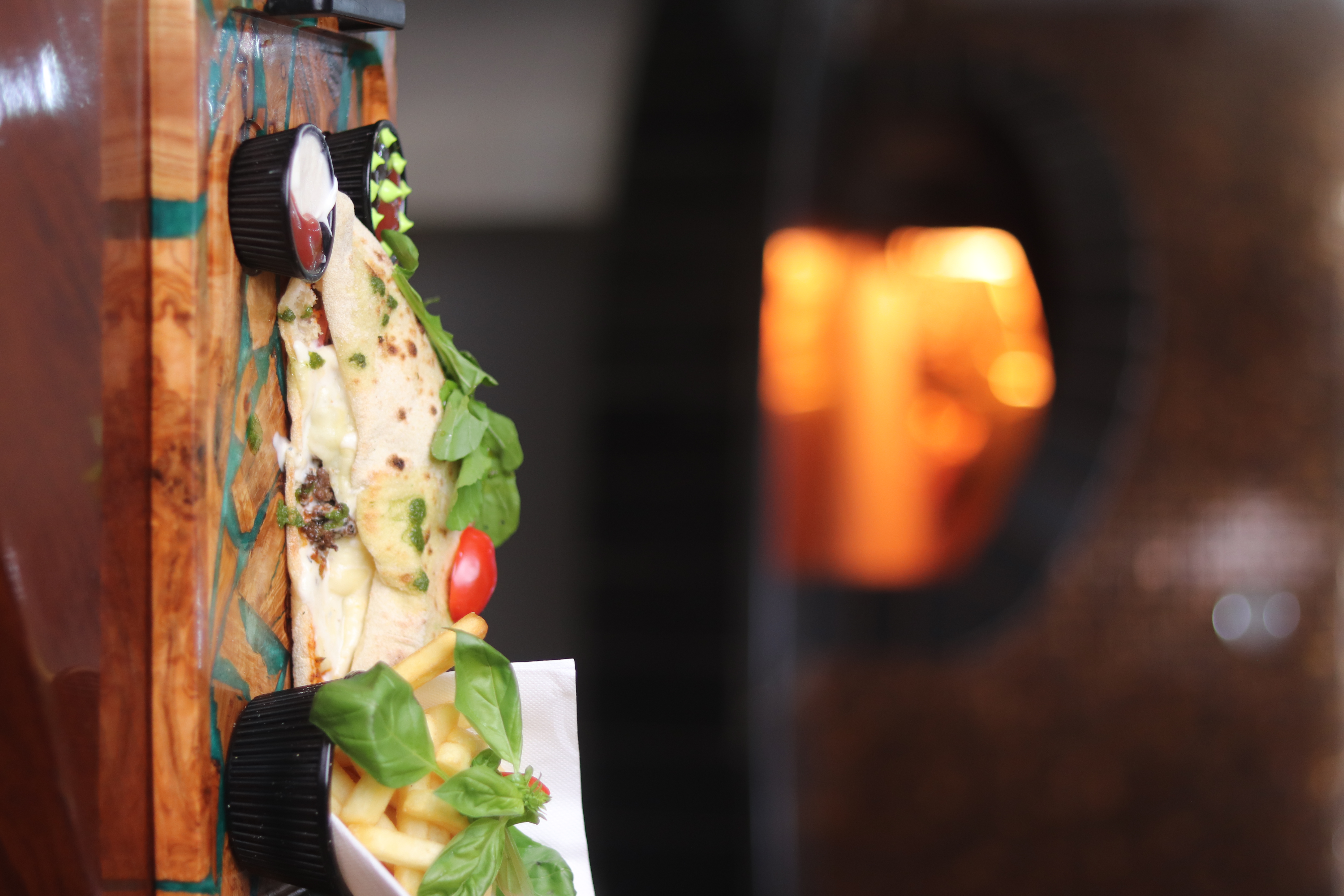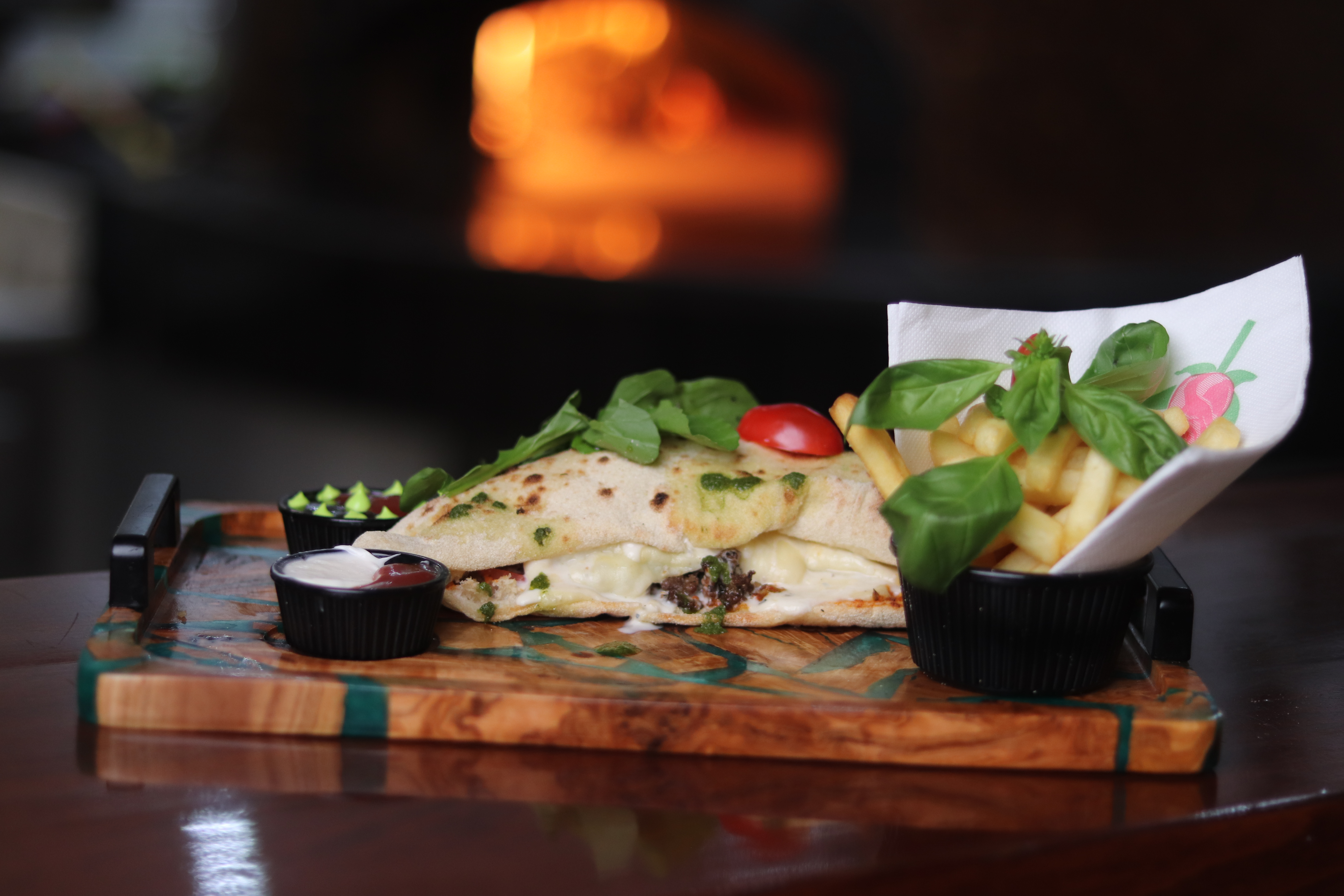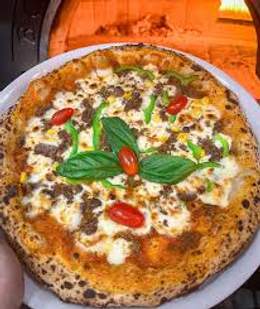 Sauce tomate, mozzarella, chorizo de bœuf, oignon, poivron rôti, piment de Cayenne, peperoncini