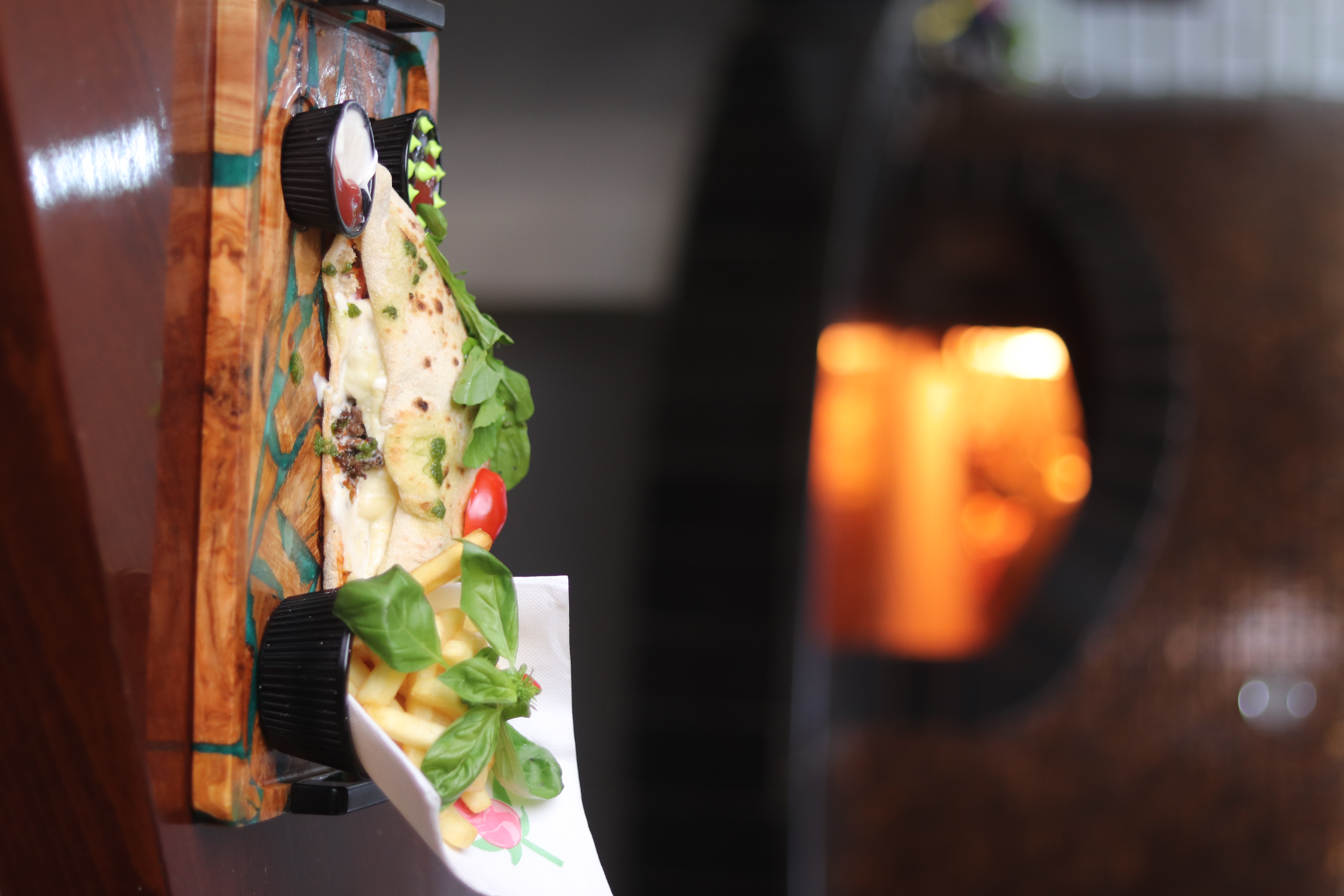 Crème de pesto, mozzarella, burrata, roquette, Grana Padano, tomate séchée, noix