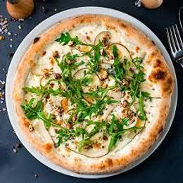 Crème blanche, mozzarella, gorgonzola, jambon de dinde fumé, oignon, roquette